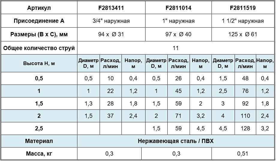 Высота струи max, м