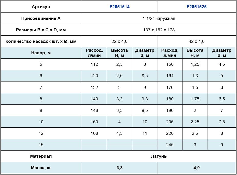 Фонтанная насадка Rotary Double Fan Jet 1 1/2", 42 x 4 мм