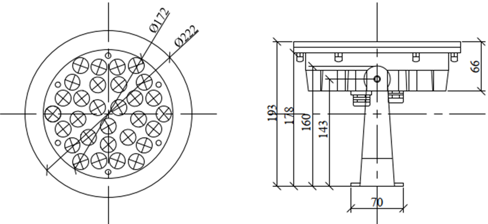 Подводный сверхмощный, светодиодный прожектор DMX (RGB-in-ONE), 30-диодный, 24VDC, угол свечения 25, LED30D.25-45W24V.DC-DMX-RGB-B