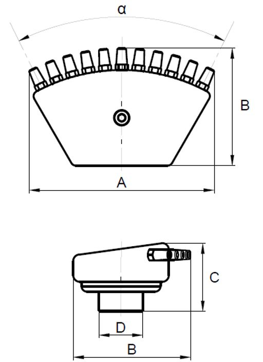 Fan of Jets представляет собой распределительный коллектор, на котором размещается группа форсунок (до 21 шт.) с выходным отверстием 4 мм. Благодаря углу наклона на выходе образуются две водные формы: как параболические, так и расходящиеся веером струи. Модели этой серии используются в основном в уличных фонтанах и бассейнах как дополнение к основной водной картине. Рекомендуемая дальность полёта струй – до 5 метров. Опционально можно заказать насадки из хромированной латуни.