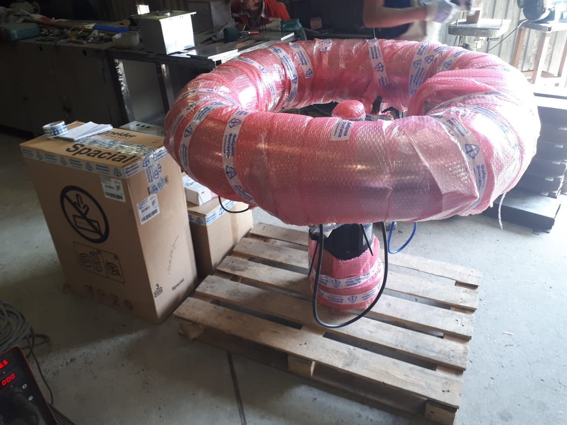 Наша команда в максимально сжатые сроки подготовила плавающий фонтан. Мы тщательно упаковали все комплектующие - обернули пузырчатой пленкой насос, светильники, понтон, насадки.